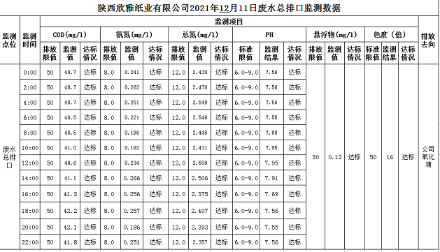 2021年12月11日废水总排口自行监测数据