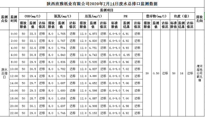 2020年7月14日废水总排口在线监测数据