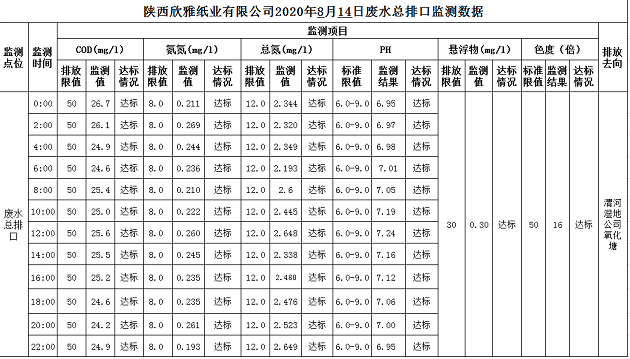 2020年8月14日废水总排口在线监测数据