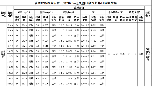 2020年9月13日废水总排口在线监测数据