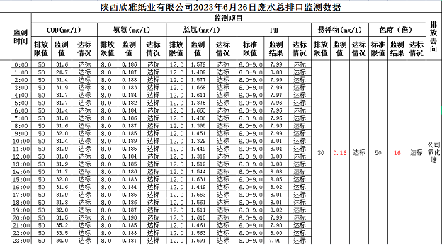 2023年06月26日废水总排口在线监测数据